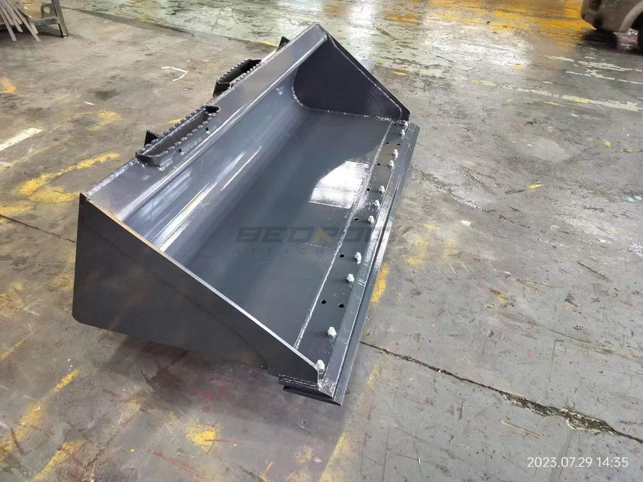 The Skid Steer Loader General Purpose Bucket is a durable and versatile attachment designed for skid steer loaders. It efficiently handles a wide range of materials, making it essential in construction, landscaping, and agriculture. With its quick-attach mechanism and sturdy construction, it offers ease of use and longevity. This bucket is ideal for loading, transporting, and dumping loose materials, and its optional features enhance digging capabilities. Overall, it maximizes the productivity and adaptability of skid steer loaders in various industries.