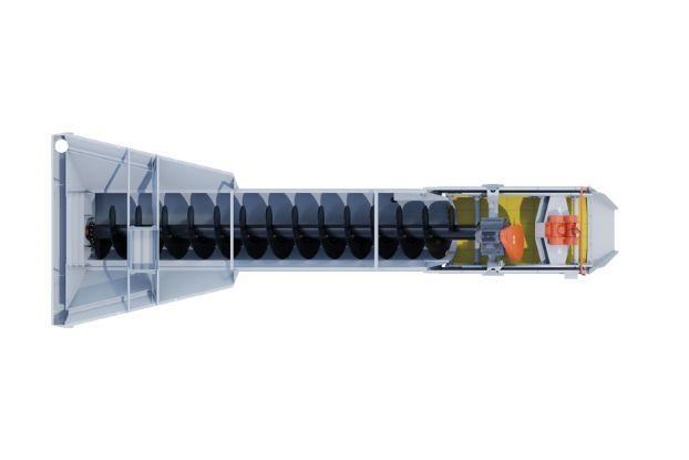 While material moves through an Aggredry Washer's screw section, clays, dirts and fines are separated before the good sand moves to an attached dewatering screen. Here, any fines lost during screening are flushed back to the screw.