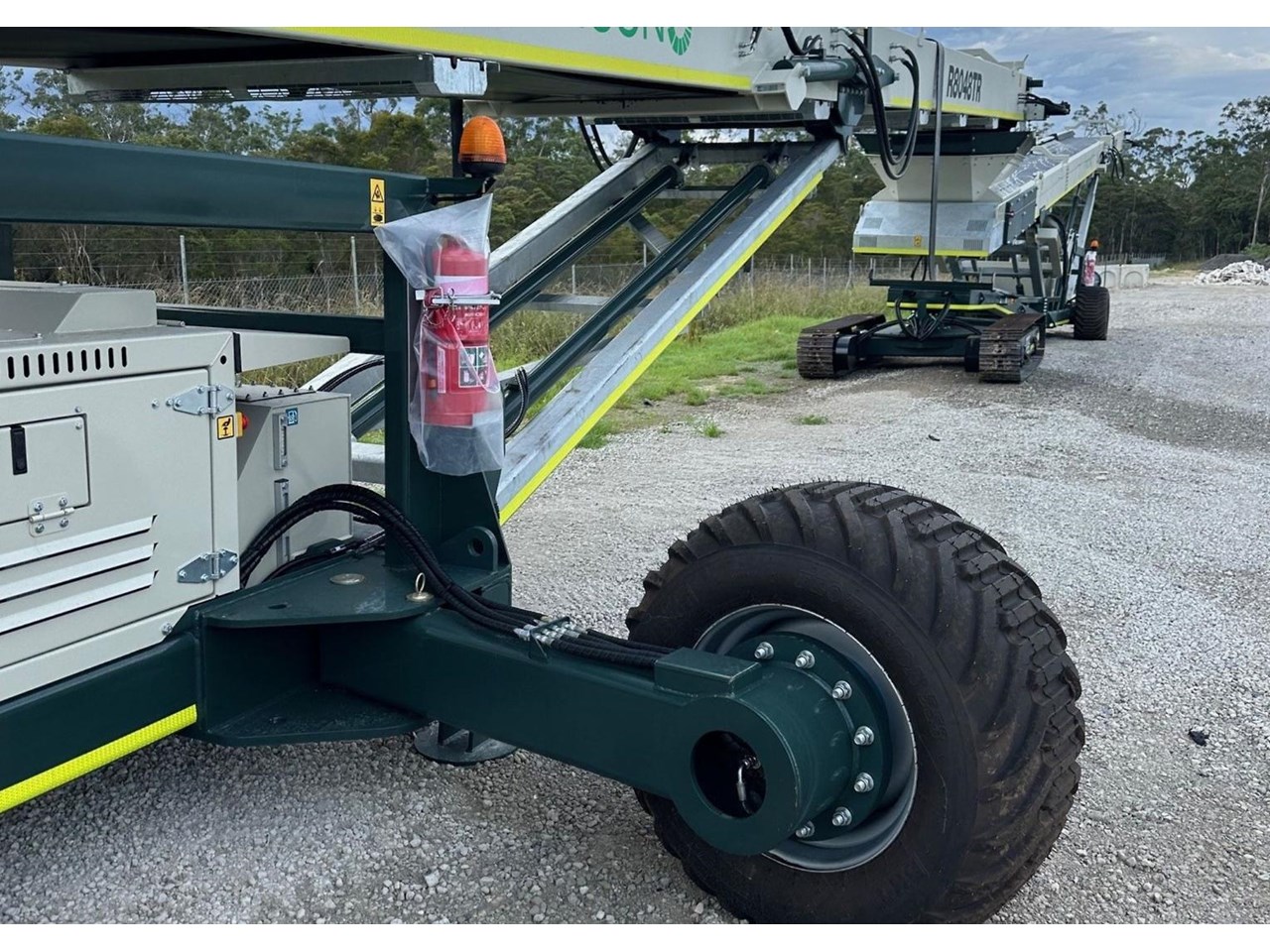 The R8048TR is an 80' 24m Radial Stockpile Conveyor, and a great option for gravel pits, processing sand, stone, or organics. It is better suited to production yards, rather than a contractor out moving from site to site. Ideal applications includes static pits, recycling yards, and small companies with maybe only one operator trying to save time loading material.