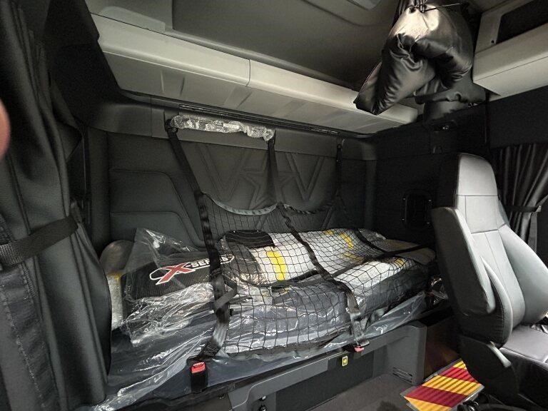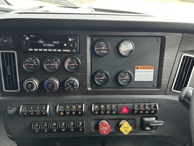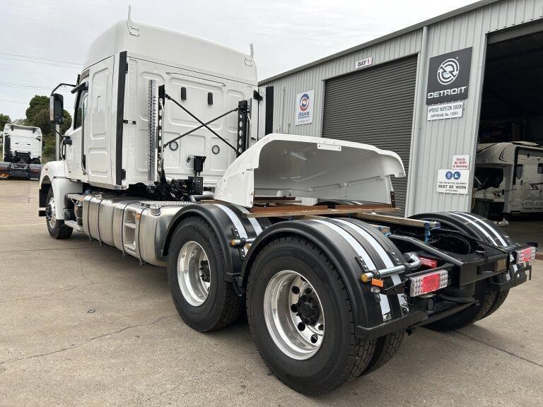 49X long bonnet with 48" mid roof sleeper, Detroit DD16 600hp @ 2050lb/ft, 12 speed automated transmission, Meritor RT46-160GP diffs , 1820lts fuel, Jost fixed turntable, alloy walk plate, Plastic drive guards and UHF radio