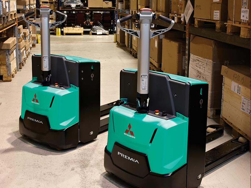 Mitsubishi has two lines of low level order picker machines – the Velia range of low-level order pickers and the Premia range of pedestrian power pallets. Both ranges having capacities of one to two tonnes.