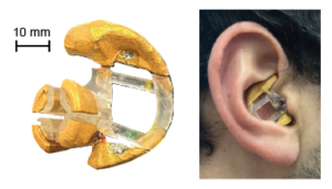 The earbuds incorporate multiple electrodes in a cantilevered design that applies gentle outward pressure to the ear canal and uses flexible electronics to ensure a comfortable fit. Signals are then read out through a custom, low-power, wireless electronic interface.